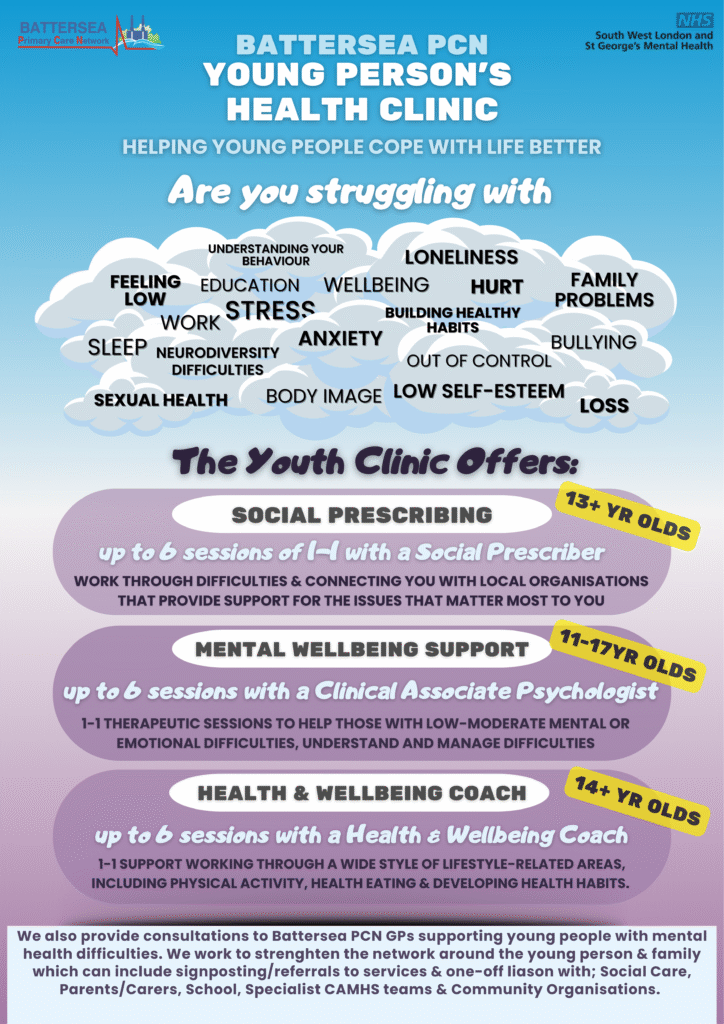 Over the past 2 and a half years, Battersea Primary Care Network and South West London and St George’s Mental Health NHS Trust CAMHS have been working together on a pioneering pilot to integrate a Clinical Associate Psychologist (CAP) into the Young Person Health Clinic.